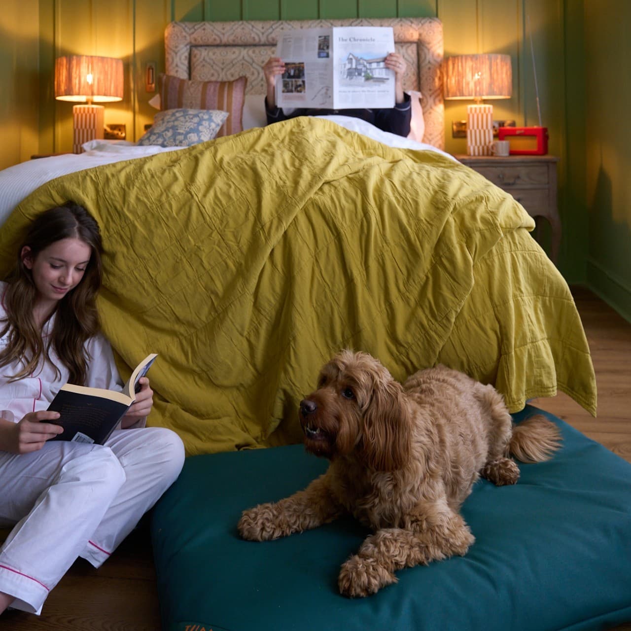 - A cosy dog bed (fits two medium-sized dogs)